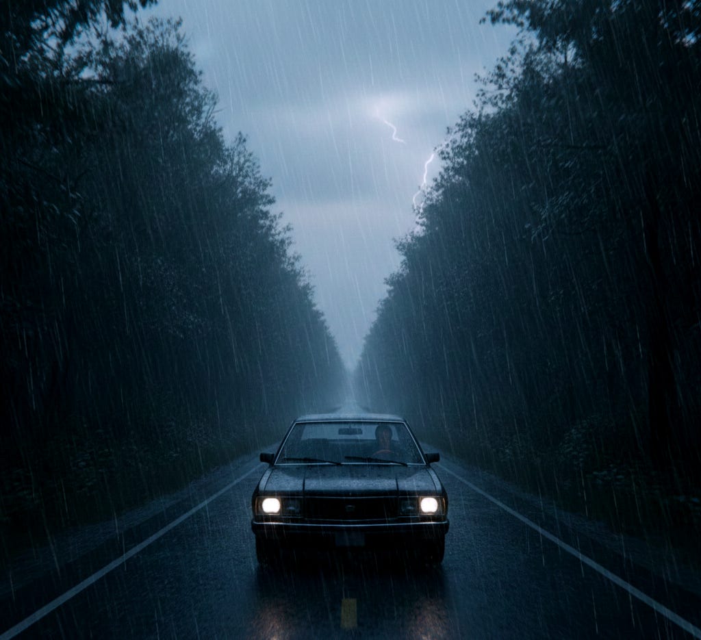 El parabrisas era un campo de batalla y yo apenas distinguía las líneas de la carretera. Mis manos resbalaban sobre el volante. Tenía que secarlas una y otra vez contra el pantalón.